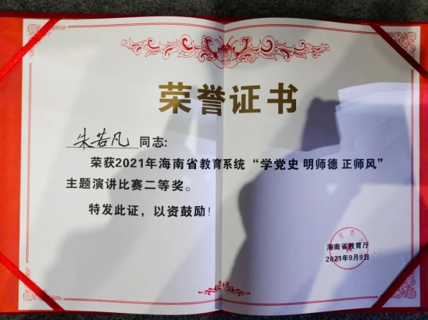 喜報 | 我校朱若凡老師榮獲海南省教育系統(tǒng)慶祝教師節(jié)主題演講比賽二等獎