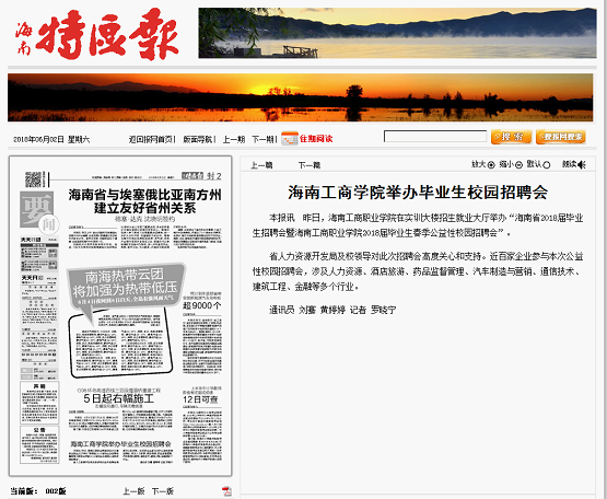 【海南特區(qū)報】 海南工商學(xué)院舉辦畢業(yè)生校園招聘會