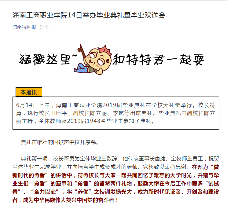 海南特區(qū)報(bào)報(bào)道我校2019屆畢業(yè)典禮