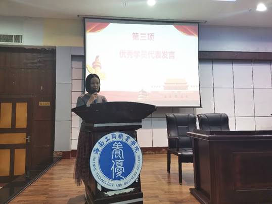 結(jié)業(yè)典禮上,黨委委員邢瓊勇宣讀了《中共海南工商職業(yè)學(xué)院委員會黨校關(guān)于表彰2020年第19期入黨積極分子培訓(xùn)班優(yōu)秀學(xué)員的決定》。經(jīng)過結(jié)業(yè)考核、課程考核、綜合評選等環(huán)節(jié),本次培訓(xùn)班共產(chǎn)生優(yōu)秀學(xué)員18名,與會領(lǐng)導(dǎo)為優(yōu)秀學(xué)員頒發(fā)了榮譽(yù)證書。隨后,優(yōu)秀學(xué)員代表何琳發(fā)言,她分享了黨校培訓(xùn)的收獲與體會,表明自己今后努力的方向。