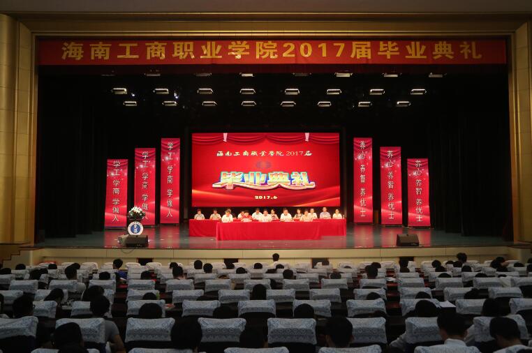 6月9日上午9:00,海南工商職業學院2017屆畢業典禮在大禮堂隆重舉行。我校校長符勇,黨委書記黃恒,副校長馮萬紅、陳立麗,總督學楊好偉出席典禮。參加畢業典禮的還有學院各教學系(部)、職能部門負責人,教師代表以及2017屆2632名畢業生。畢業典禮由黨委書記黃恒主持。
