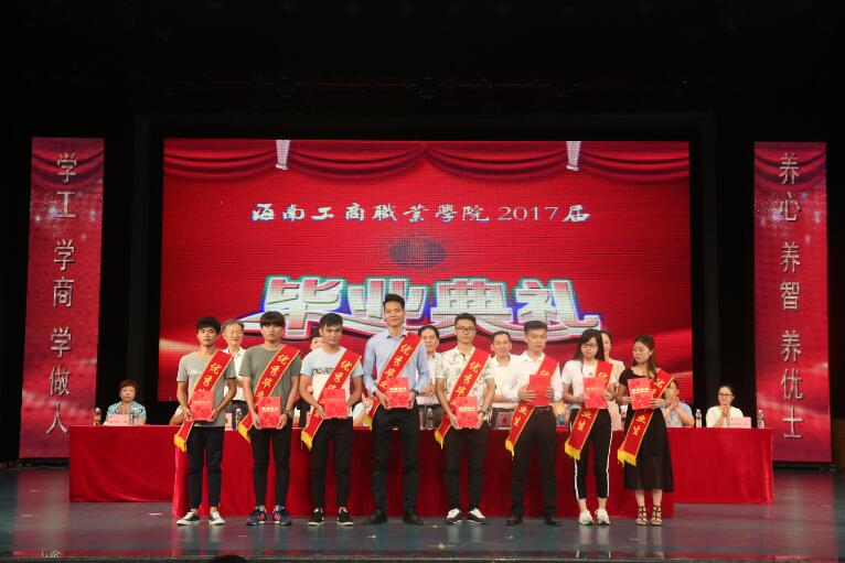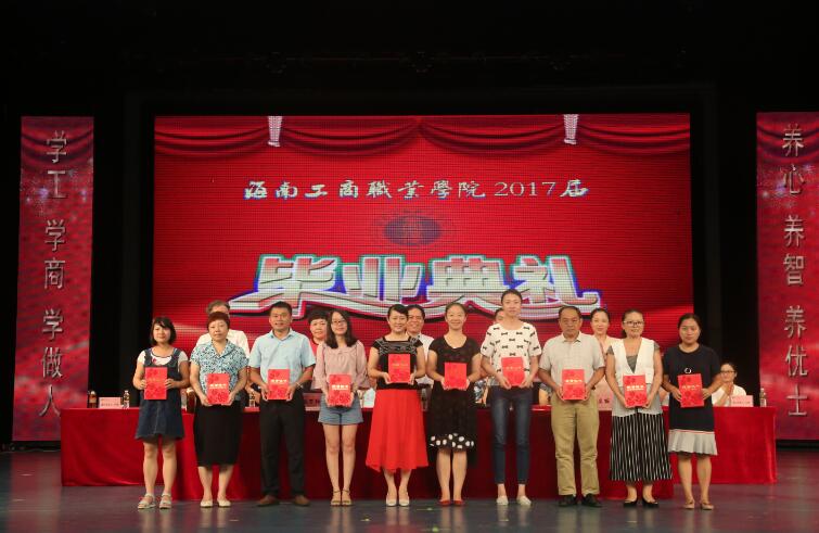 副校長馮萬紅和副校長陳立麗分別宣讀了《海南工商職業學院關于批準2017屆畢業生畢業的決定》、《海南工商職業學院最受畢業生歡迎教師評選結果》、《海南工商職業學院關于表彰2017屆優秀畢業生的決定》,并由主席臺就坐的校領導為2017屆畢業生代表頒發畢業證、為最受畢業生歡迎教師代表和2017屆優秀畢業生代表頒發榮譽證書。