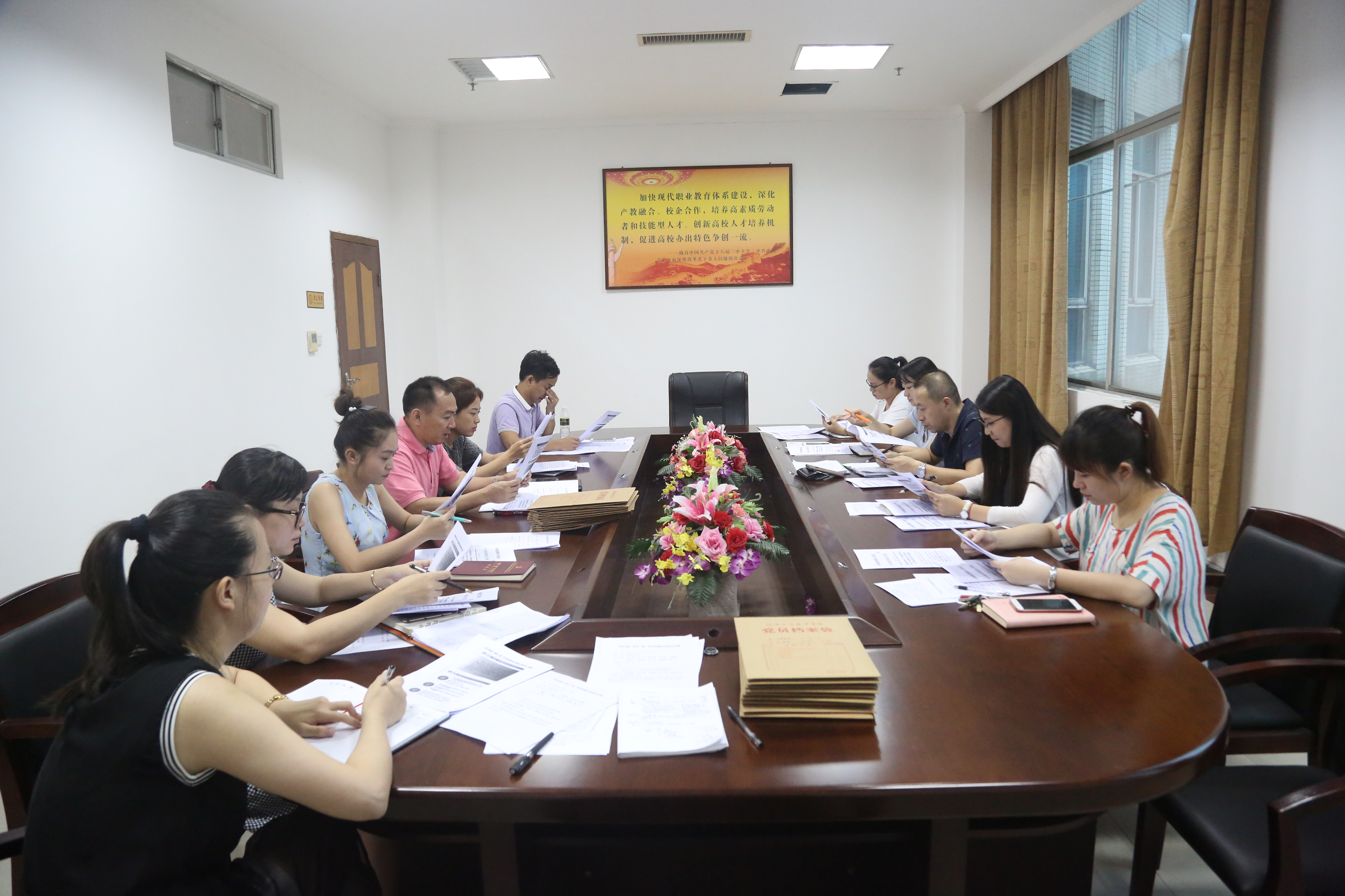 會上,黃書記帶領各黨委委員、各二級學院書記全文學習省委教育工委《深入推進“兩學一做”學習教育常態化制度化的實施方案》,同時利用南海先鋒官網上推送的《關于推進“兩學一做”學習教育常態化制度化的意見》圖解,簡單透徹的說明了其重大意義、基本要求和做法,著重強調黨員要具備“四個意識”、“四個自信”等基本素養。期間全員還學習了習近平對推進“兩學一做”學習教育常態化制度化的重要指示和《關于認真貫徹習近平總書記重要指示廣泛開展向黃大年同志學習活動的通知》。最后黃書記希望通過此次黨委理論中心組擴大會集中學習能激勵在座所有黨員干部主動學、自覺學,深入學習黨章黨規,時刻關注黨的政策動態,發揮核心作用,夯實我校黨的組織基礎。