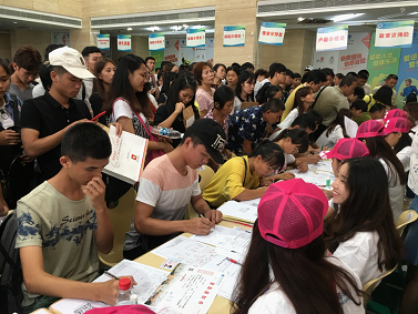 上午十點(diǎn)過后,迎來了新生報(bào)到的第一次高峰。人數(shù)雖多,但忙中有序,在志愿者的指引下,新生報(bào)到的各個(gè)環(huán)節(jié)都在有條不紊地進(jìn)行中。今年我校迎新區(qū)域還專設(shè)了家長(zhǎng)休息處和飲水處,并安排學(xué)生會(huì)志愿者為家長(zhǎng)服務(wù)。對(duì)于貧困新生,我校繼續(xù)開辟“綠色通道”,通過申請(qǐng)國(guó)家助學(xué)貸款等方式,幫助新生解決資金困難問題。我校各二級(jí)學(xué)院學(xué)生干部及志愿者積極投入到迎新工作中,各司其職,各盡其力,積極為迎新工作的順利開展做貢獻(xiàn)。