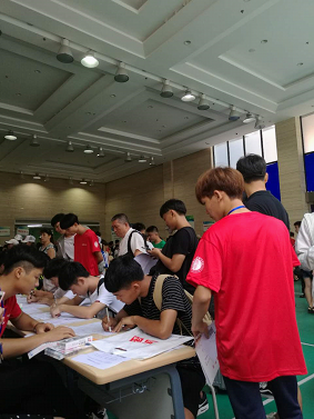 ??? 灼灼烈日之下,只見(jiàn)學(xué)長(zhǎng)學(xué)姐們悉心的引導(dǎo),一遍一遍的帶領(lǐng)新生報(bào)到,他們?yōu)樾律顾榧议L(zhǎng)及時(shí)安排座位休息,領(lǐng)著新生穿梭在報(bào)名登記、繳納費(fèi)用、激活校卡、學(xué)生宿舍、領(lǐng)行李軍訓(xùn)服、搬行李、整理宿舍等,連續(xù)一整天堅(jiān)持的在迎新大廳幫忙,只為獻(xiàn)上自己一份力量,忙碌的身影不曾休息片刻。他們的團(tuán)結(jié)是我們的一大步,他們是學(xué)院的驕傲,更是學(xué)生的榜樣,有了這樣的隊(duì)伍,我院工作才能更加順利的開(kāi)展。
