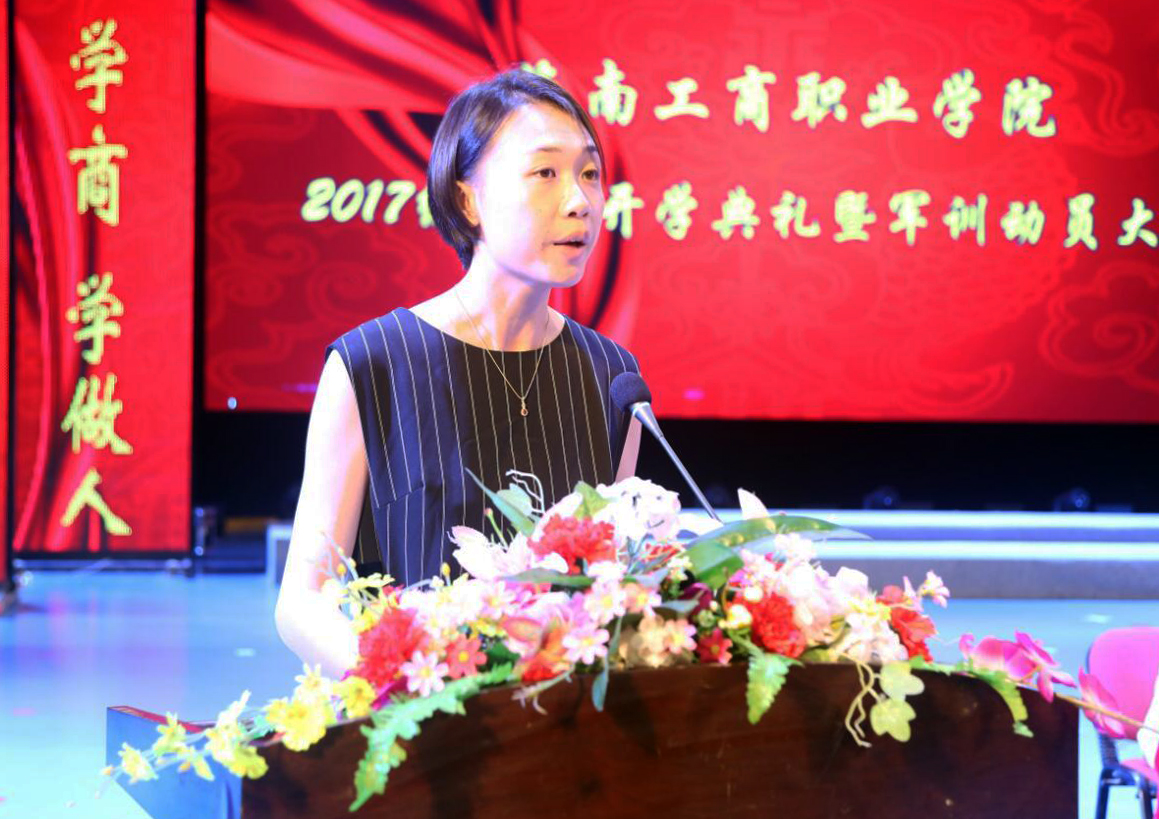 隨后,信息工程學(xué)院移動通信技術(shù)專業(yè)楊陽老師作為教師代表發(fā)言,她代表全體專任教師向2017級新同學(xué)表示熱烈的歡迎,并從品德、胸懷、習(xí)慣和學(xué)業(yè)四方面與大家一同分享大學(xué)學(xué)習(xí)生活的經(jīng)驗。她希望通過自身發(fā)言可以使同學(xué)們感受到來自海工商全體老師們的這份真情,這份執(zhí)著。