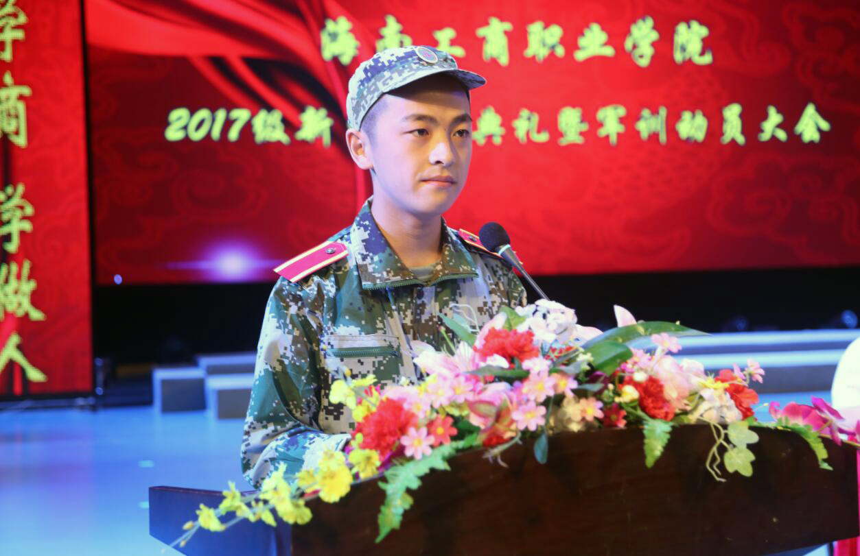 然后,武警海南總隊第一支隊教官代表楊寶同志上臺進(jìn)行軍訓(xùn)動員講話,希望2017級新生們按照要求,服從安排,嚴(yán)格認(rèn)真訓(xùn)練,圓滿完成本次軍訓(xùn)。