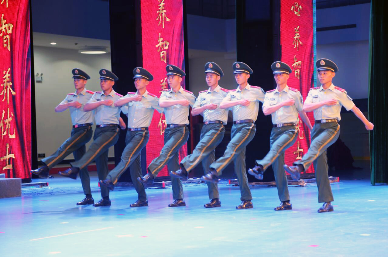 典禮結(jié)束后,承訓(xùn)部隊教官為我校師生帶來隊列展示和擒敵術(shù)表演。