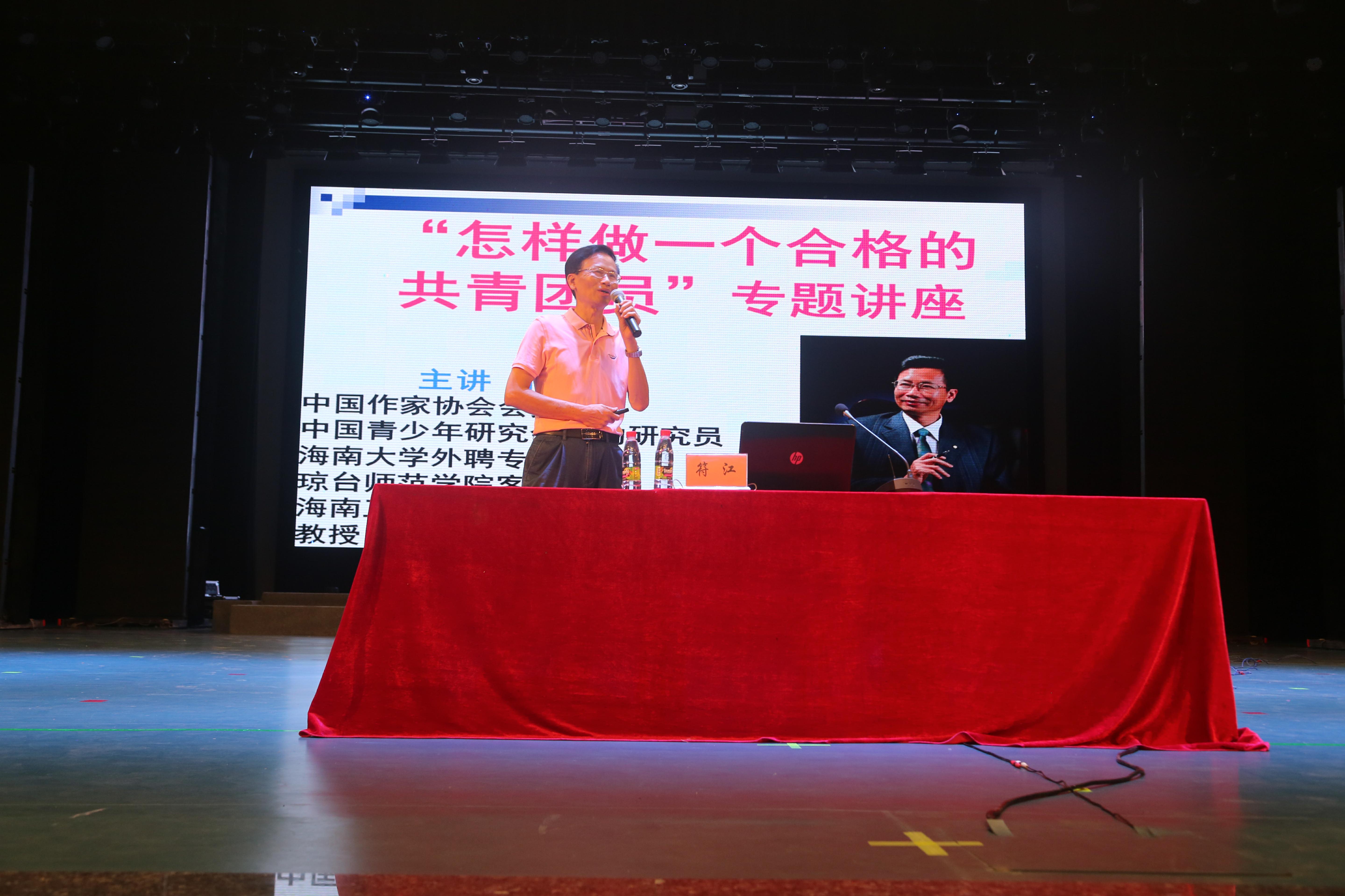 9月5日,校團(tuán)委榮幸地邀請到中國作家協(xié)會會員、中國青少年研究會特約研究員符江教授來為我校2017級新生開展了主題為“怎樣做一個合格的共青團(tuán)員”的講座。