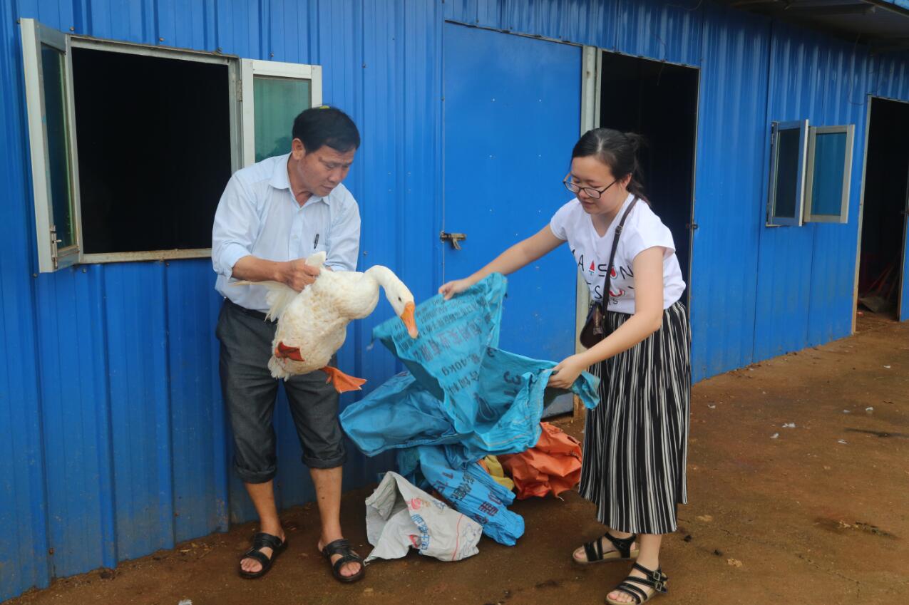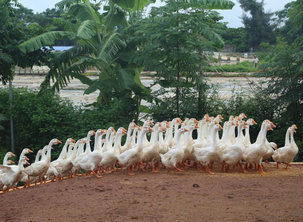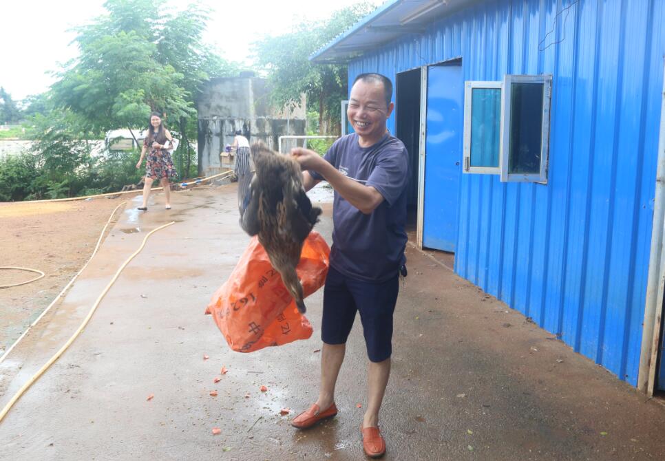 9月的海南陽(yáng)光毒辣,萬(wàn)里無(wú)云,這絲毫沒有減少大家對(duì)活動(dòng)的熱切期盼,有人抱著紙箱,有人拎著袋子,還有有人扯著粗繩,一路歡聲笑語(yǔ)向養(yǎng)殖場(chǎng)出發(fā)。養(yǎng)殖場(chǎng)里,平日文質(zhì)彬彬的男士?jī)扇艘换飪簺_向了家禽,雞、鴨被攆得到處跑,抓鵝的老師也窮追不舍,圍觀的老師大喊著:“快點(diǎn),快抓住它!”當(dāng)然,也有一些膽兒小的女士在養(yǎng)殖場(chǎng)工作人員的協(xié)助下,將家禽逮捕歸袋,大家各個(gè)喜笑顏開。