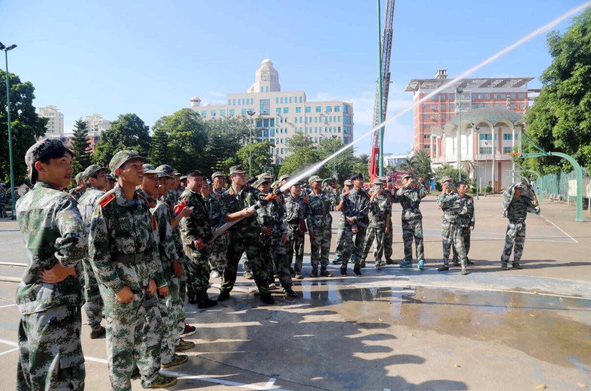 根據(jù)海南省教育廳《關(guān)于開展2017年“消防知識進(jìn)軍訓(xùn)”活動(dòng)》的通知和要求,為了使學(xué)生增強(qiáng)消防安全意識,提高自我防護(hù)能力,減少、避免事故的發(fā)生,我校于9月21日在大一新生中開展消防疏散逃生演練和消防滅火體驗(yàn)活動(dòng)。