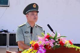大會(huì)上,符勇校長代表我校向承訓(xùn)部隊(duì)武警海南總隊(duì)第一支隊(duì)贈(zèng)送了“言傳身教展軍人風(fēng)采,軍民共建育國家棟梁”的錦旗,向給予學(xué)校軍訓(xùn)工作大力支持的全體教官表示衷心感謝和敬意。