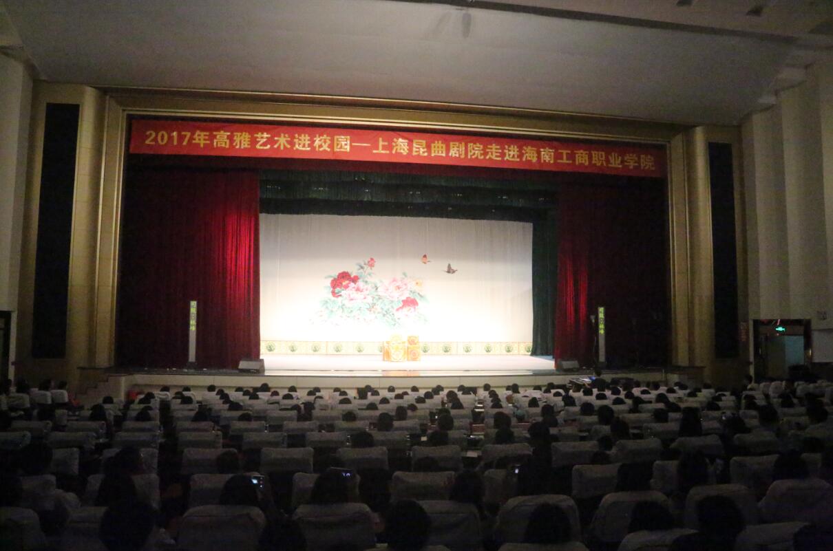 10月17日晚,我校大禮堂內(nèi)座無(wú)虛席,“2017高雅藝術(shù)進(jìn)校園”活動(dòng)走進(jìn)海南工商職業(yè)學(xué)院,由上海昆劇團(tuán)為我校師生帶來(lái)昆曲表演《墻頭馬上》。教育廳副廳長(zhǎng)黎岳南、教育廳體育衛(wèi)生與藝術(shù)教育處處長(zhǎng)盧剛、上海昆劇團(tuán)張?jiān)伭粮眻F(tuán)長(zhǎng)、我校校長(zhǎng)符勇、副校長(zhǎng)林昭華、副校長(zhǎng)陳立麗與全體大一新生在學(xué)校大禮堂共同觀看了精彩演出。