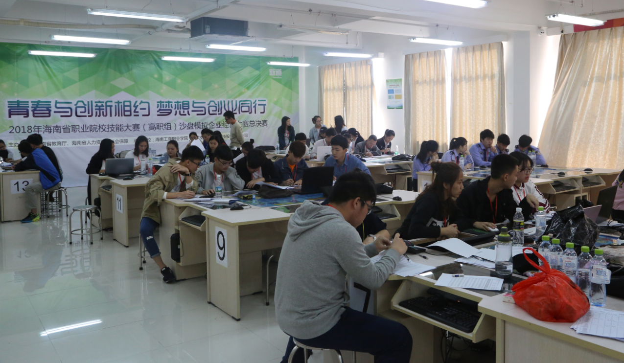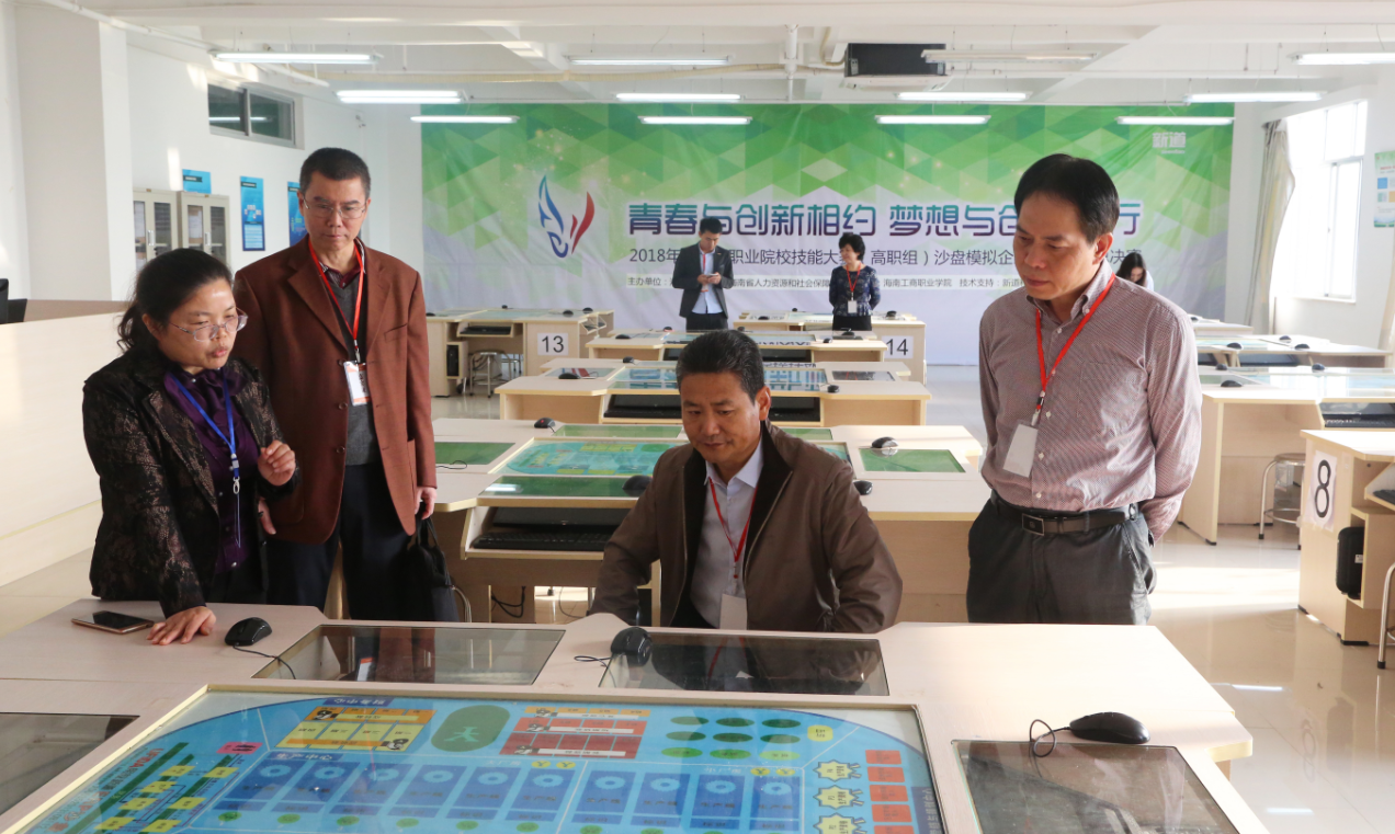 3月23日上午8:30,海南工商職業(yè)學院承辦的2018年全省職業(yè)院校技能大賽——“新道杯”ERP沙盤模擬企業(yè)經(jīng)營大賽開賽。來自全省8所高職院校的16支參賽隊伍80名參賽選手參加角逐,展示海南高職學生模擬企業(yè)實際運行能力。海南省教育廳高教處處長朱雙平在我校校長符勇和副校長林昭華的陪同下視察比賽現(xiàn)場情況。