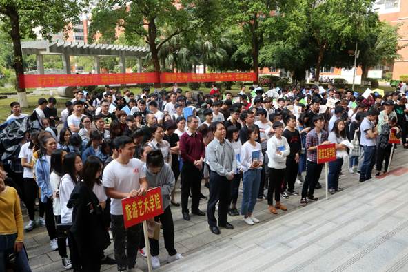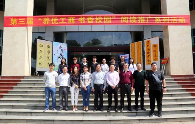 最美人間四月天,莫負讀書好時光。2018年4月9日上午,我校第三屆“養優工商?書香校園”閱讀推廣系列活動啟動儀式在圖書館門前隆重舉行。學校校長符勇博士、學校黨委黃恒書記、副校長林昭華、陳立麗、黨政辦主任劉騫、學生處處長邢瓊勇、副處長王鵬程、圖書館館長朱恩榮,各學院黨支部書記(副書記)、輔導員代表,學生代表共400多人參加了活動啟動儀式。