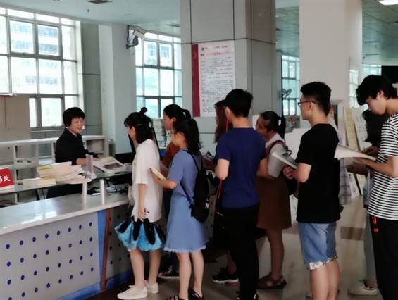 同學們在排隊借閱圖書