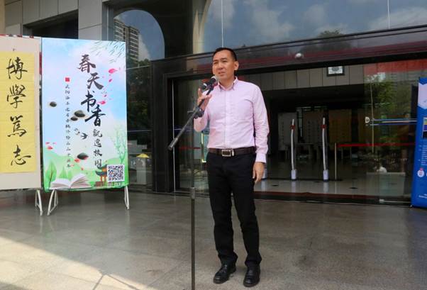 儀式上,黃恒書記做了讀書月動員講話。他結合時代背景談個人的讀書感悟,倡導莘莘學子應多讀些人文經典來豐富自己的人生底蘊。他說:“只有閱讀才能更好地建設我們的精神家園”。他聲情并茂的引述,贏得了全場熱烈的掌聲。