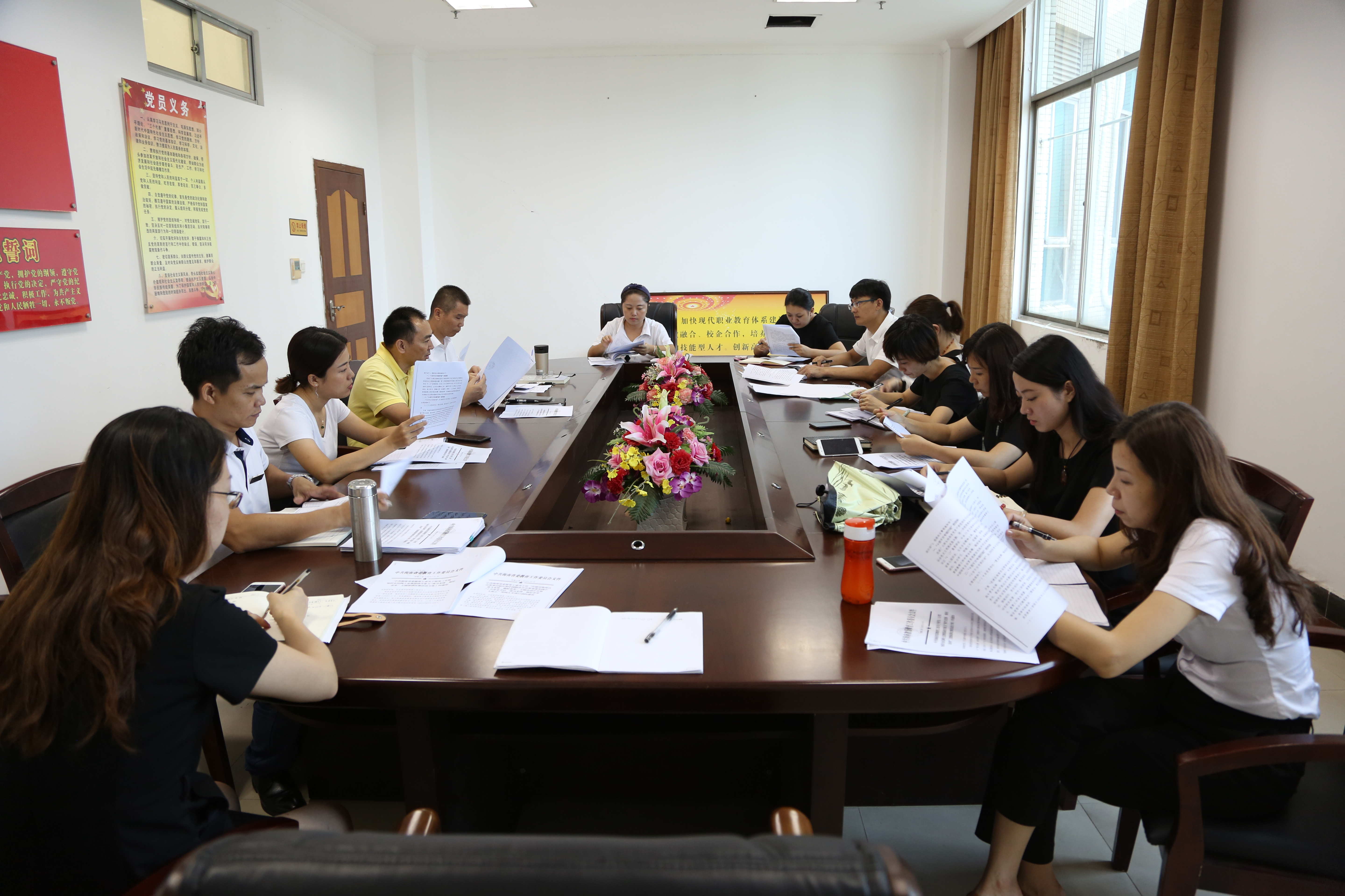 9月13日下午3點整,我校黨委在行政大樓八樓黨員活動室召開“勇當先鋒 做好表率”研究部署專題會。黨委書記黃恒,副校長林昭華和陳立麗,黨委委員邢瓊勇,各黨總支(支部)書記,思政課部主任張冬蘋,黨政辦相關工作人員參加本次會議。本次會議由黃恒書記進行主持。