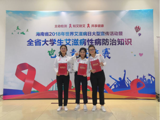 2018年11月25日,由海南省衛(wèi)生健康委員會(huì)、海南省教育廳聯(lián)合舉辦的2018年海南省大學(xué)生艾滋病性病防治知識(shí)電視競(jìng)賽在海南省電視臺(tái)隆重舉行。本次大賽我校選手發(fā)揮出色,以175分的好成績(jī)獲得二等獎(jiǎng)。