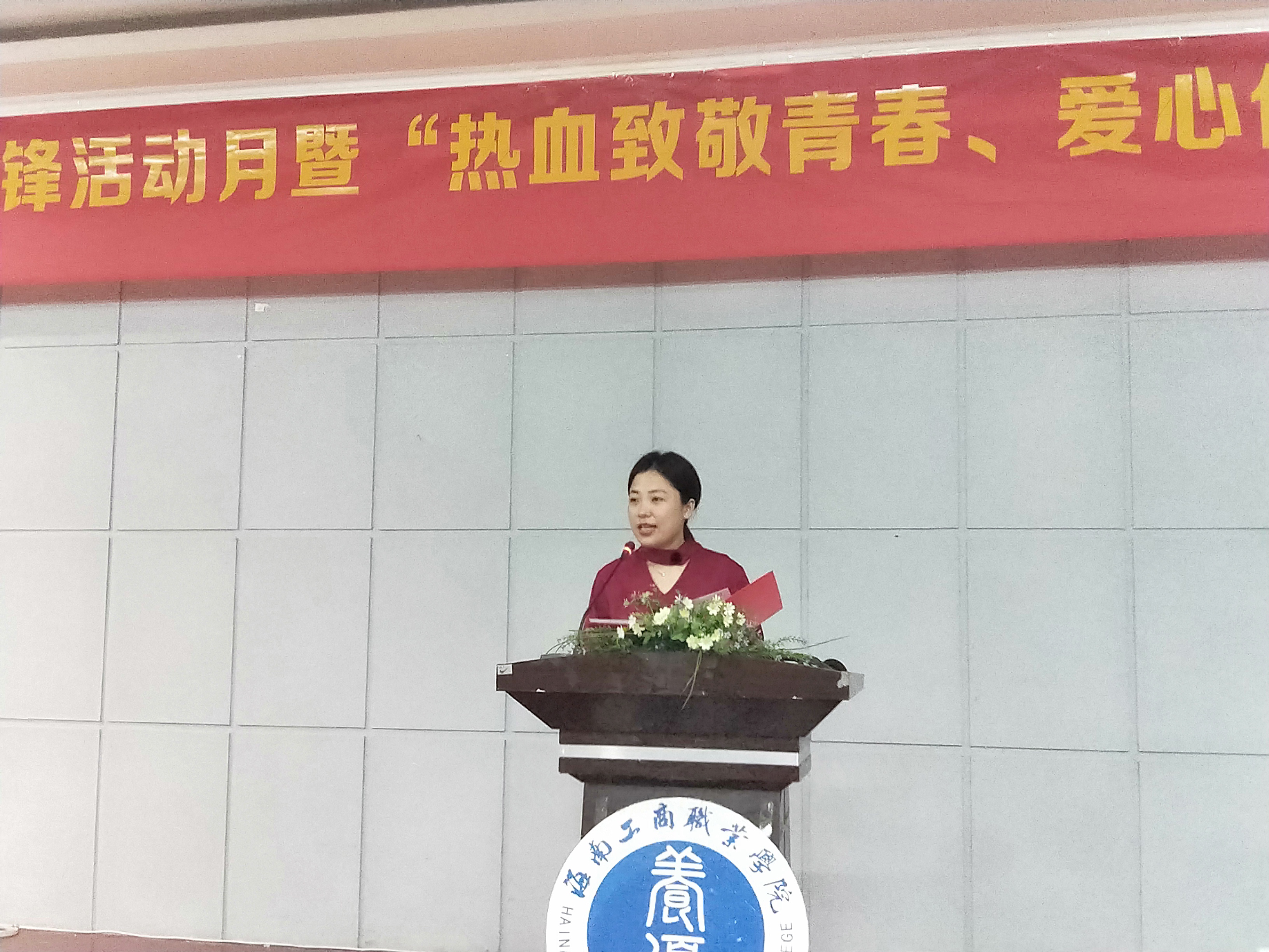 2019年3月5日是第56個學雷鋒紀念日,也是第20個“中國青年志愿者服務日”。我校團委在圖書館報告廳舉行海南工商職業學院2019年學雷鋒主題活動月暨“熱血致敬青春、愛心傳遞溫暖”志愿活動啟動儀式。此次我校特邀海南省血液中心主任助理、黨辦主任陳姬妙,宣傳招募科科長鄭日大參加本次活動,我校黨委委員、副校長陳立麗,黨委委員、校團委書記邢瓊勇出席本次活動,各學院團總支書記以及來自各學院近200名青年學生代表參加了本次活動。