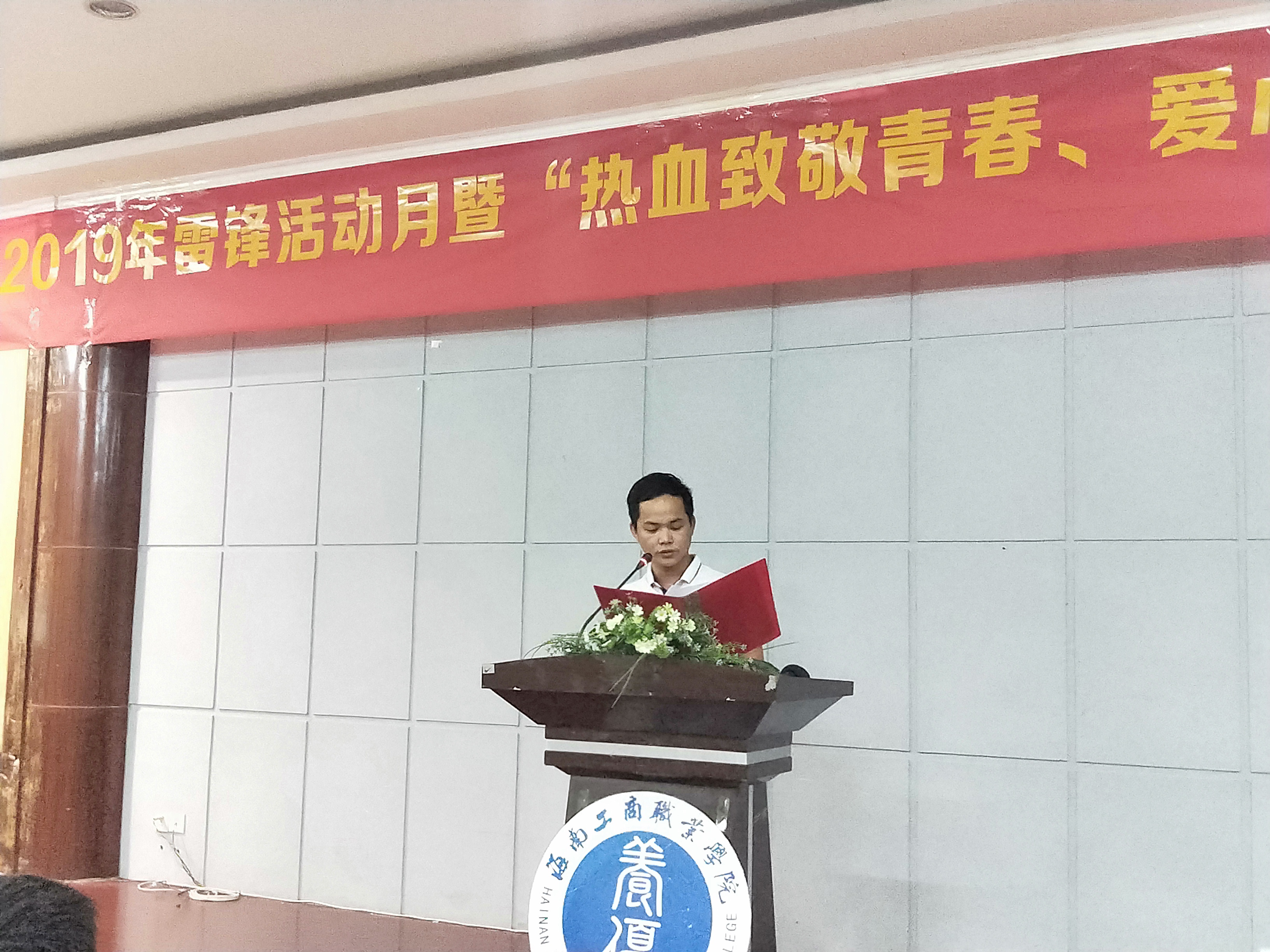 隨后,邢瓊勇處長對我校此次學雷鋒主題活動月做具體安排。最后我校學生代表上臺發表《雷鋒伴我行》倡議。