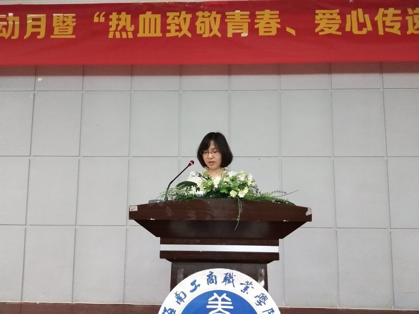 接著,省血液中心陳姬妙主任為啟動儀式致辭。她向我校積極參與無償獻血的的師生表示感謝。她提到習近平總書記曾在北大的師生座談會講話中提出,青年要自覺踐行社會主義核心價值觀,其中一個要求是在修德上下功夫,加強道德修養,注重道德實踐,而獻血也是一項重要的德行修養,希望與海南工商職業學院攜手,通過本次學雷鋒系列活動的開展,進一步在高校營造“無償獻血無私奉獻”的濃厚氛圍。