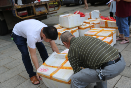 今年我校繼續(xù)響應(yīng)愛心扶貧助農(nóng)活動(dòng),特意訂購(gòu)了一批定安扶貧村農(nóng)家雞作為福利分發(fā)至各位教職員工。3月20日,滿載著一箱箱活雞的貨車從定安縣龍湖鎮(zhèn)安仁村出發(fā),為了便于運(yùn)輸及方便教職工領(lǐng)取,首先將雞統(tǒng)一送至指定的屠宰點(diǎn)處理,下午五點(diǎn)半貨車到達(dá)學(xué)校,正逢下班時(shí)間,大家都聚集到行政樓前,各部門派代表領(lǐng)取后又在現(xiàn)場(chǎng)轉(zhuǎn)而發(fā)放至本部門教職工,一時(shí)熱鬧非常。
