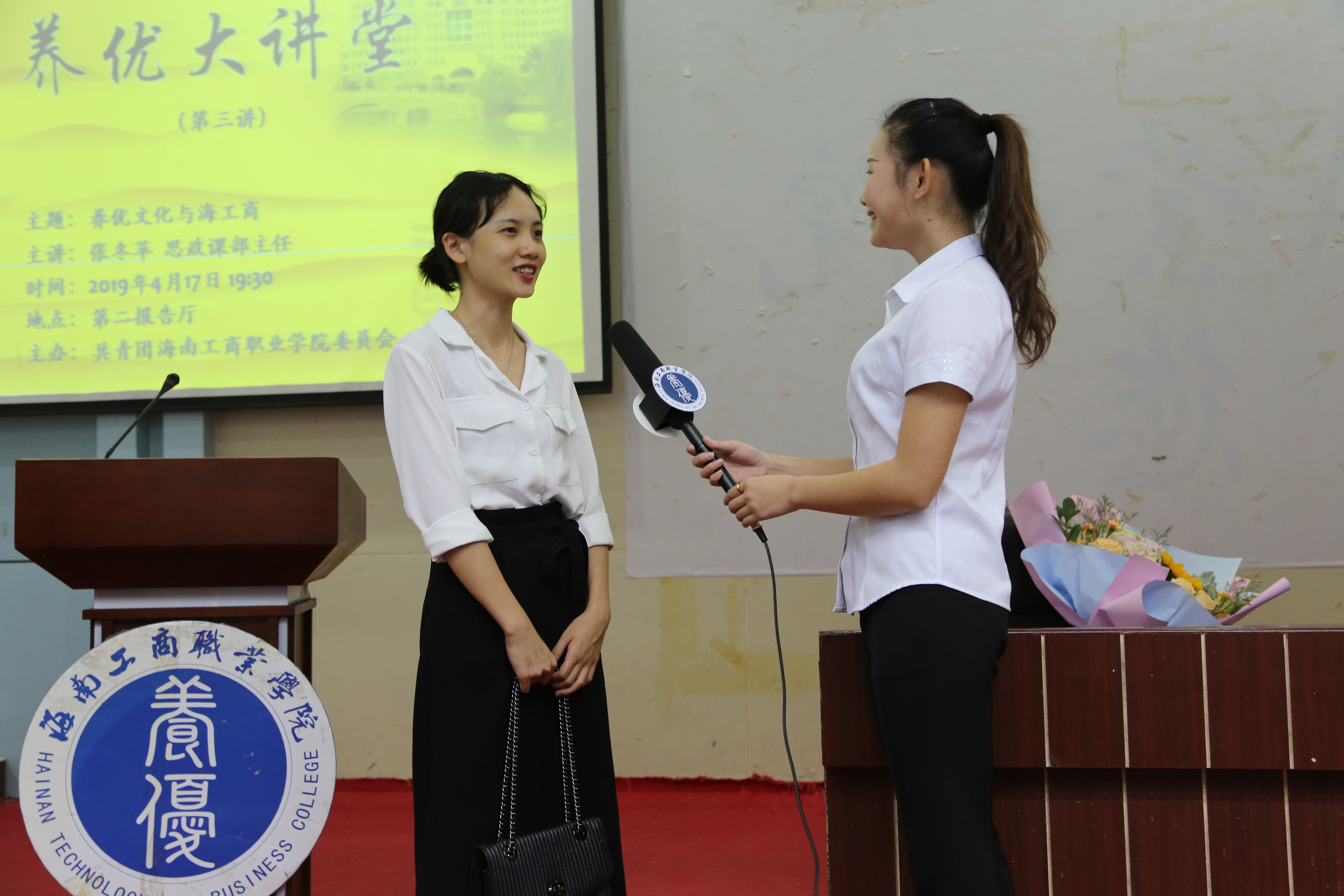 ?? 4月17日19:30,我校團(tuán)委特邀我校思政課部張冬蘋主任在第二報告廳舉辦“養(yǎng)優(yōu)文化與海工商”專題講座。講座由我校學(xué)生處王登輝老師主持,全校師生共500余人參加本次活動。