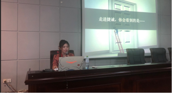4月10日下午,?海南捷誠裝飾工程有限公司在我校圖書館一樓報告廳舉辦宣講會,信息工程學(xué)院團總支書記余津洋、信息工程學(xué)院、經(jīng)濟管理學(xué)院及建筑工程學(xué)院2017級學(xué)生參加了本次宣講會。本次宣講會的主講人是海南捷誠裝飾工程有限公司陳嘉萍經(jīng)理,她從企業(yè)文化、企業(yè)歷程、工作環(huán)境三個方面向同學(xué)們介紹了企業(yè)。