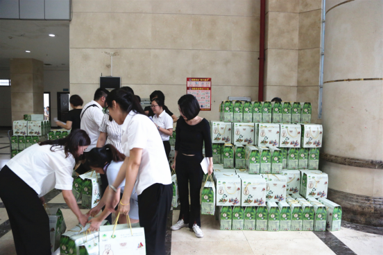 ???5月29日,滿載著粽子的貨車從定安縣龍湖鎮(zhèn)安仁村出發(fā),既有口碑良好的定安黑豬肉棕,又有改良口味的仙溝牛肉棕。下午三點(diǎn)左右貨車到達(dá)學(xué)校,卸貨途中一場(chǎng)大雨不期而至,但并未影響大家的熱情,雨勢(shì)稍小后,在各部門同事的協(xié)助下1000盒粽子的搬運(yùn)工作順利完成,領(lǐng)到端午粽子的教職工臉上都洋溢著喜悅的笑容。分發(fā)工作直至下午七點(diǎn)結(jié)束,福利分發(fā)任務(wù)完成之際,校園上空掛上一道雨后彩虹,仿佛另一份美好的贈(zèng)禮。