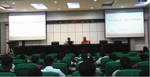 王一凡老師是海大黨委辦公室秘書科科長、機(jī)關(guān)團(tuán)委書記,具有豐富的高校工作及公文寫作經(jīng)驗(yàn)。他從公文寫作的幾點(diǎn)心得體會(huì)講起,由淺入深地從從公文寫作理論、標(biāo)準(zhǔn)以及技巧等方面進(jìn)行了詳細(xì)闡述,其中不乏生動(dòng)的范例及實(shí)用性強(qiáng)的技巧分享。