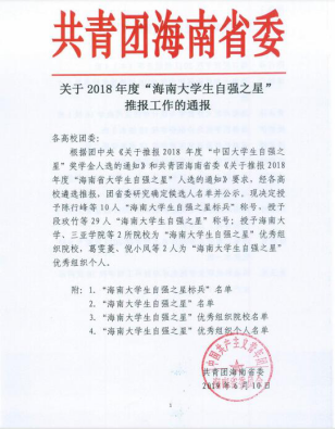 ???本網訊 (通訊員 倪小鳳)熱烈祝賀我校信息工程學院2018級信息工程學院電氣自動化班陳重私同學榮獲2018年度“海南大學生自強之星標兵”稱號,倪小鳳老師獲2018年度“海南大學生自強之星優(yōu)秀組織個人”稱號。
