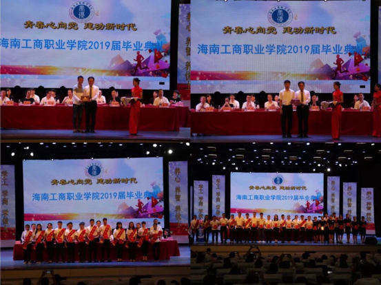 執(zhí)行校長田巨平、副校長陳立麗、李璐分別宣讀了《海南工商職業(yè)學(xué)院關(guān)于批準(zhǔn)2019屆畢業(yè)生畢業(yè)的決定》、《海南工商職業(yè)學(xué)院關(guān)于表彰2018屆優(yōu)秀畢業(yè)生的決定》、《海南工商職業(yè)學(xué)院最受畢業(yè)生歡迎教師評(píng)選結(jié)果》。