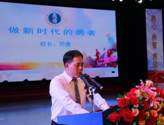 首先,校長符勇為全體畢業(yè)生致辭。他首先代表董事長唐捷先生、全校師生員工,祝賀全體畢業(yè)生完成學(xué)業(yè),并向培育同學(xué)們成長成才的老師們、家長們致以衷心的感謝。在題為“做新時(shí)代的勇者”的講話中,符校長與大家一起共同回憶了難忘的大學(xué)時(shí)光,并贈(zèng)與畢業(yè)生們“勇者”的盔甲和“勇者”的智慧兩件禮物,鼓勵(lì)大家在今后的工作中要多“試試看”和“全力以赴”,將“養(yǎng)優(yōu)”之校訓(xùn)發(fā)揚(yáng)光大,成為新時(shí)代的見證者、開創(chuàng)者和建設(shè)者,成為中華民族偉大復(fù)興的中國夢的奮斗者!