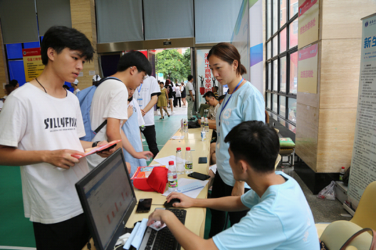 今年新生報到采用線上線下相結(jié)合的報到方式,新生可提前關(guān)注“海南工商職業(yè)學(xué)院信息門戶”,按提示逐步完成線上預(yù)報到流程,再進行線下現(xiàn)場報到,該流程極大縮短了報到時間,也免去了新生在各窗口辦理的排隊之苦。此外,為確保每位新生都能順利報到,在校迎新領(lǐng)導(dǎo)小組的指導(dǎo)下,各二級學(xué)院、各職能部門都積極組織教師和學(xué)生志愿者在迎新現(xiàn)場為新生及家長提供熱情周到的服務(wù)。