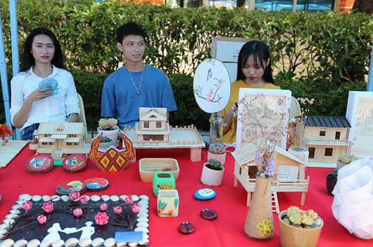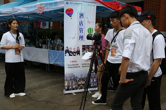 在人頭攢動的大廳內(nèi),各二級學(xué)院的展示區(qū)熱鬧非凡。各二級學(xué)院紛紛展示各自的優(yōu)勢專業(yè)和精彩的教學(xué)活動。“迎新養(yǎng)優(yōu)社團文化節(jié)”還在現(xiàn)場拉開了帷幕,聚焦展示24個學(xué)生社團和12類職業(yè)技能,設(shè)計新穎建筑和廣告設(shè)計作品、專業(yè)的模擬點鈔展示、活潑吸睛的3D打印動漫作品和游戲角色cosplay、悅耳動聽的尤克里里和吉他彈奏、動感十足的街舞和籃球、古韻風(fēng)雅的茶藝展示,年輕的“養(yǎng)優(yōu)”學(xué)子們不畏陣雨瓢潑,揮灑著青春的熱情和活力,吸引眾多新生和家長駐足觀看,現(xiàn)場氣氛熱烈溫馨。