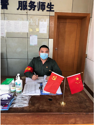 校園實行封閉式管理后,每天進出校園的人員和車輛有所減少,但是保衛(wèi)人員絲毫沒有松懈,依然無論風吹雨淋,烈日炎炎,堅守崗位,認真履行職責。人手不足,辛久丹鼓勵大家發(fā)揚奉獻精神,主動為大家解決后顧之憂,他還響應(yīng)學(xué)校黨委號召,積極協(xié)調(diào)黨員教師值班輪守;防護物資不足,辛久丹聯(lián)合后勤部門多方協(xié)調(diào)購買,帶領(lǐng)大家合理利用。“不忘初心,牢記使命,勇于擔當,樂于奉獻,這本就是一個共產(chǎn)黨員應(yīng)當具備的品質(zhì)”辛久丹說道:“疫情當前,守護好健康校園,保護好師生安全,就是我們最大的責任,我們必須將疫情拒之門外!”