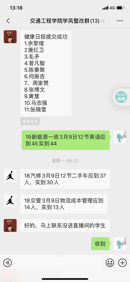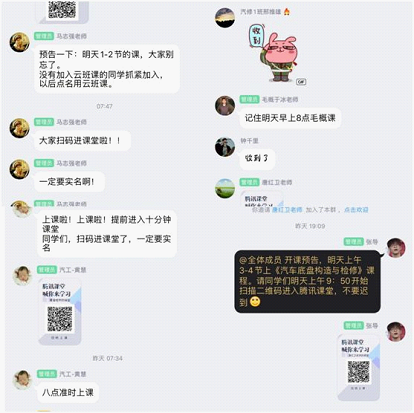 新鮮的授課方式更需要關注網(wǎng)課的質(zhì)量。為了監(jiān)督網(wǎng)課的到課率,輔導員們每天提前提醒同學們按時上課,化身貼身“小鬧鐘”。