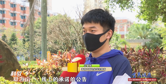 海南工商職業(yè)學(xué)院教師 王登輝:我們學(xué)校也是做了一個(gè) 線上的承諾的公告,我校所有的學(xué)生全部都參與到這個(gè)公告進(jìn)來(lái),并且承諾出門戴口罩、勤洗手一系列的這種活動(dòng)當(dāng)中。