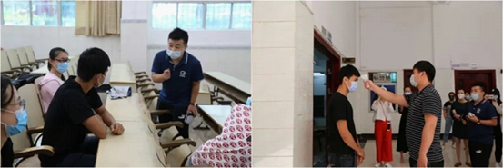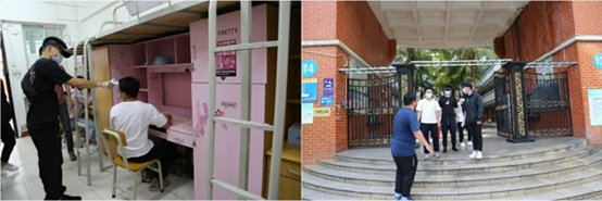 ??? 此次演練分為“學(xué)生入校管理”、“學(xué)生課堂管理”、“學(xué)生就餐管理”、“學(xué)生宿舍發(fā)熱應(yīng)急處置”等四個(gè)模擬場(chǎng)景,參加演練的教職員工分別扮演學(xué)生及校園管理者,在各個(gè)場(chǎng)景嚴(yán)格按照處置流程對(duì)正常及特殊情況進(jìn)行規(guī)范處置。在新增的“學(xué)生宿舍發(fā)熱” 場(chǎng)景中,主要模擬深夜學(xué)生在宿舍發(fā)熱,從宿舍長(zhǎng)至輔導(dǎo)員至救治組組長(zhǎng)逐級(jí)上報(bào)流程,并對(duì)發(fā)熱學(xué)生、同宿舍學(xué)生及學(xué)生宿舍分別按規(guī)定進(jìn)行處置。在演練各場(chǎng)景,教職員工均能按照流程熟練操作,整個(gè)演練過(guò)程流暢順利。