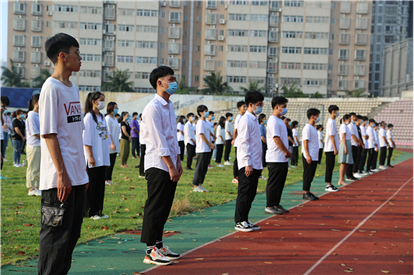 5月13日早7點10分,旭日東升,已返校的海工商2019級各團支部團員代表、輔導員及學生處(團委)負責人戴好口罩,保持安全距離,在學校田徑運動場,舉行升國旗儀式,這是“開學第一課”的另一重要環(huán)節(jié)。
