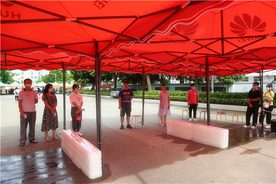 新冠肺炎疫情風(fēng)險(xiǎn)雖降低了,但學(xué)校疫情常態(tài)化防控工作不松懈。學(xué)子們返校測(cè)溫消毒環(huán)節(jié)不能省。九月,“秋老虎”兇猛,大冰塊來(lái)給教師志愿者們降溫,頂著烈日?qǐng)?jiān)守崗位,老師們辛苦啦!