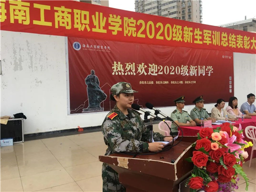 本網(wǎng)訊 (通訊員 潘穎)庚子季秋,天氣初肅。10月24日早晨,海南工商職業(yè)學(xué)院在學(xué)校田徑運(yùn)動場隆重舉行2020級新生軍訓(xùn)總結(jié)表彰大會。瓊山區(qū)武裝部政委史廣斌上校,武警海南總隊(duì)機(jī)動支隊(duì)副政治委員孔令溏中校,校黨委書記黃恒,代校長陳立麗,副校長馮萬紅、羅愛玲、陳桄平,各二級學(xué)院、各部門負(fù)責(zé)人及全體新生、輔導(dǎo)員參加,校黨委副書記劉騫主持大會。