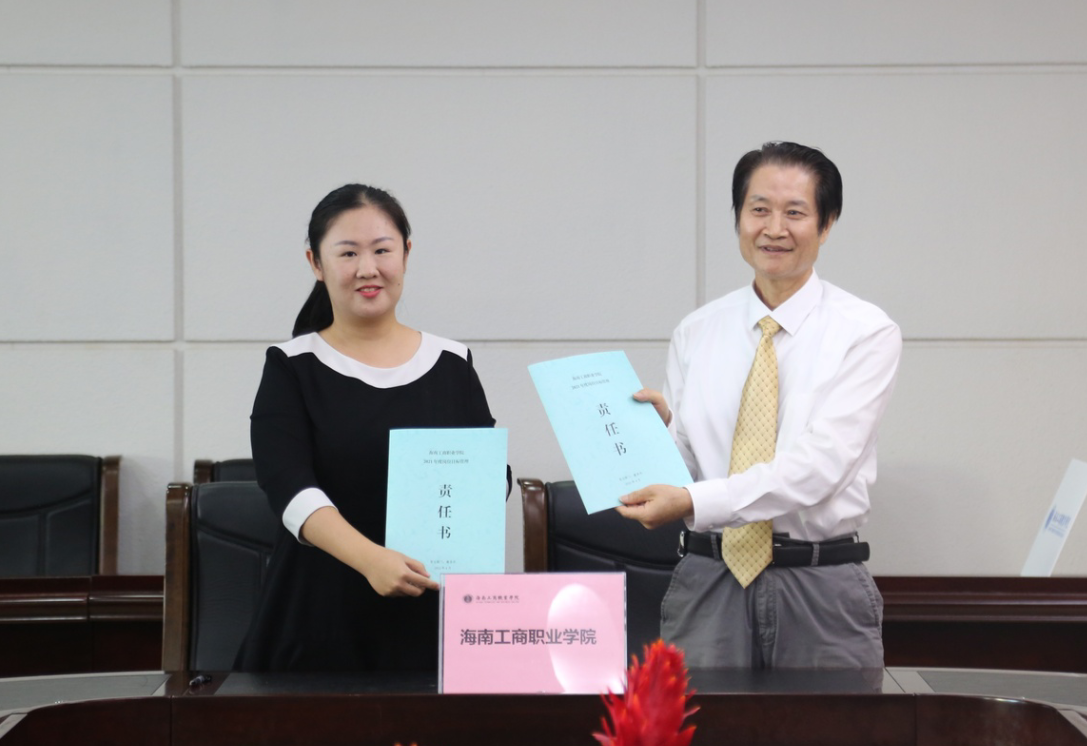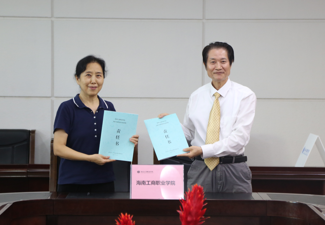 隨后,田巨平校長(zhǎng)代表學(xué)校與學(xué)院(部)及職能部門(mén)代表簽訂《2021年度崗位目標(biāo)管理責(zé)任書(shū)》。