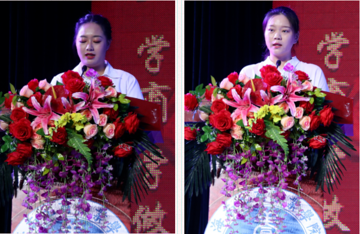 畢業(yè)生代表2018級信息工程學(xué)院陳重私同學(xué)發(fā)言,他深情感恩母校的悉心培育和師長們的諄諄教誨,向圓滿完成學(xué)業(yè)的2021屆全體畢業(yè)生表示衷心祝賀,向悉心指導(dǎo)同學(xué)們成長成才的各位老師致以誠摯感謝,向?qū)W(xué)生關(guān)心、對教學(xué)精心、對校園盡心的教輔員工們致以崇高敬意。在校生代表2020級交通工程學(xué)院許睿同學(xué)發(fā)言,她祝愿學(xué)長學(xué)姐能勇往直前,去追求平凡中的卓越;揚起勝利的風(fēng)帆去創(chuàng)造平靜中的升華;用自身魅力去實踐青春無悔的諾言,在廣袤的天空下展翅翱翔。教師代表經(jīng)濟管理學(xué)院黃海璐老師發(fā)言,她希望同學(xué)們在大學(xué)時光不留遺憾,希望寄托在這場典禮中的“養(yǎng)優(yōu)”精神,能在踏入社會后得以延續(xù)和弘揚!