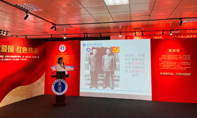專題黨課《重慶談判》由衛(wèi)生健康學(xué)院黨支部學(xué)生黨員畢藝瑋主講,她圍繞重慶談判的時(shí)代背景、目的、結(jié)果和歷史意義展開講述,在講述中帶領(lǐng)師生重返重慶談判的歷史場景。