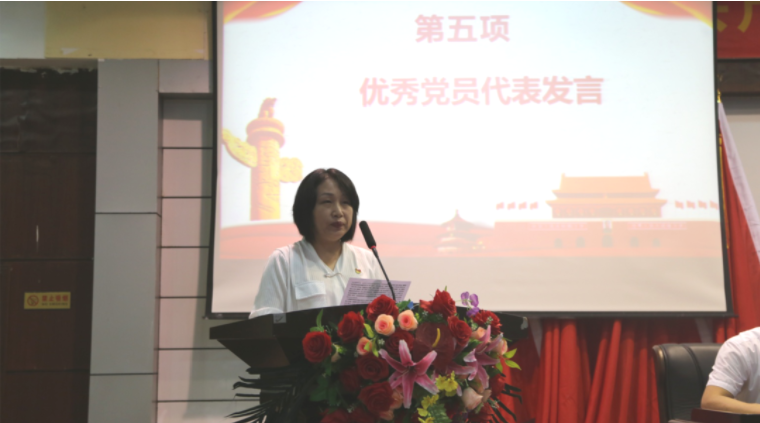 優(yōu)秀黨員代表曹曉莉老師上臺(tái)發(fā)言。她從一名基層思政課教師的角度出發(fā),暢談了自己平凡生活中秉承良心和誠(chéng)心,用一件一件的小事,一點(diǎn)一滴的行動(dòng)去履行一名黨員教師的職責(zé)。