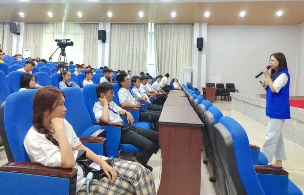 朱老師圍繞心理健康的概念、大學生心理健康的標準、影響心理健康的因素、自我發(fā)現(xiàn)與改變、大學生的戀愛觀等八個方面進行講解,指導大家如何進行心理調(diào)節(jié)、緩解心理壓力、保持心理平衡、建立良好的人際關(guān)系。