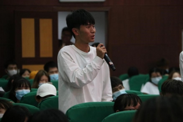 田校長(zhǎng)以“楹聯(lián)欣賞”為主題,從“什么是楹聯(lián)”、“名勝聯(lián)”、“常見(jiàn)的對(duì)聯(lián)格式”、“部分對(duì)聯(lián)集錦”等四個(gè)方面展開(kāi)生動(dòng)講授,為師生們?cè)敿?xì)介紹楹聯(lián)文化。講座內(nèi)容縱跨古今、橫貫?zāi)媳保v授深入淺出、慷慨激昂,引得臺(tái)下同學(xué)們陣陣?yán)坐Q般的掌聲。講座結(jié)束后,田校長(zhǎng)又針對(duì)講授內(nèi)容與師生們展開(kāi)互動(dòng),對(duì)楹聯(lián)文化饒有興致的學(xué)生代表還在田校長(zhǎng)具有感染力的講授影響下即興對(duì)聯(lián)。