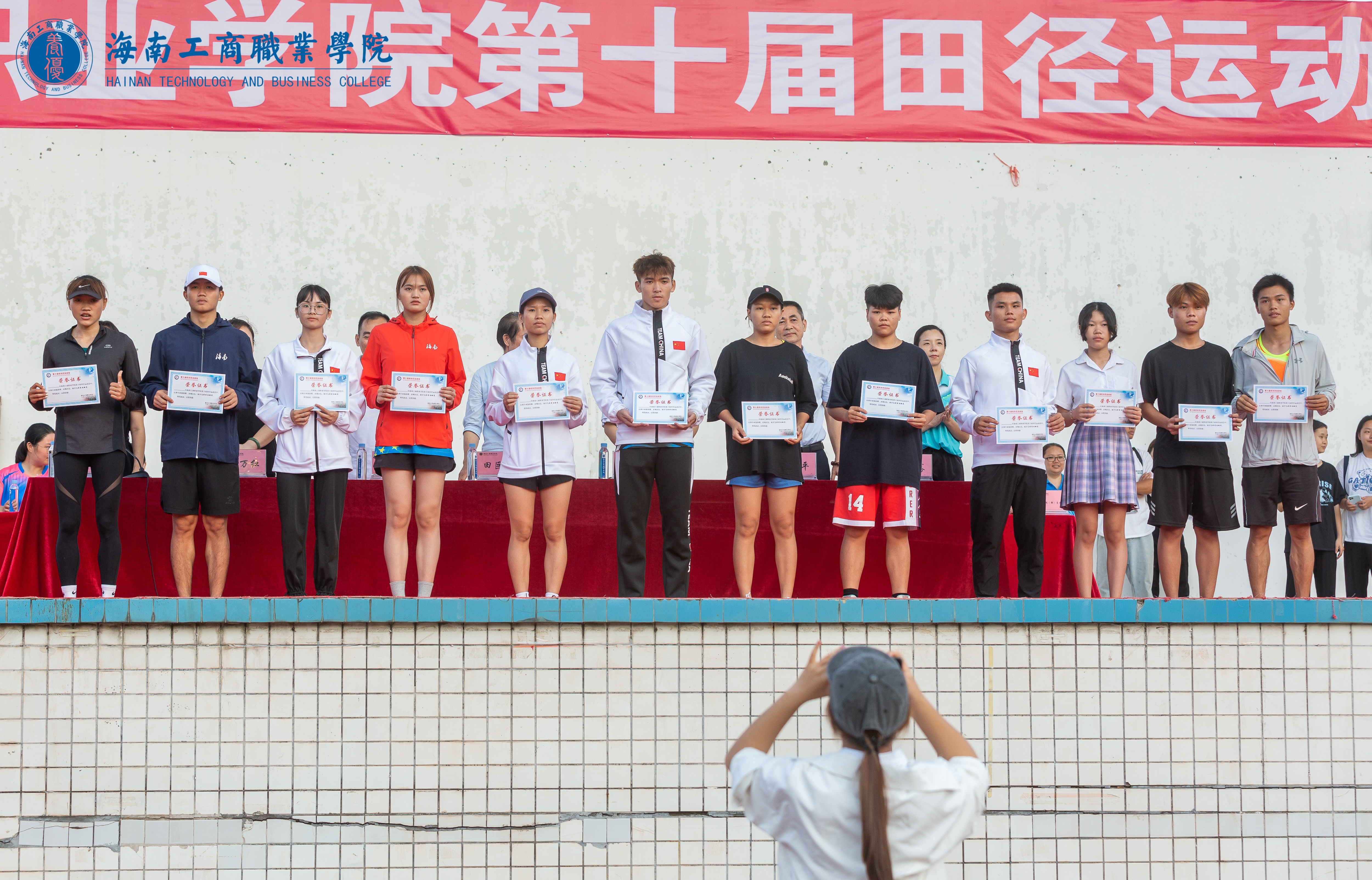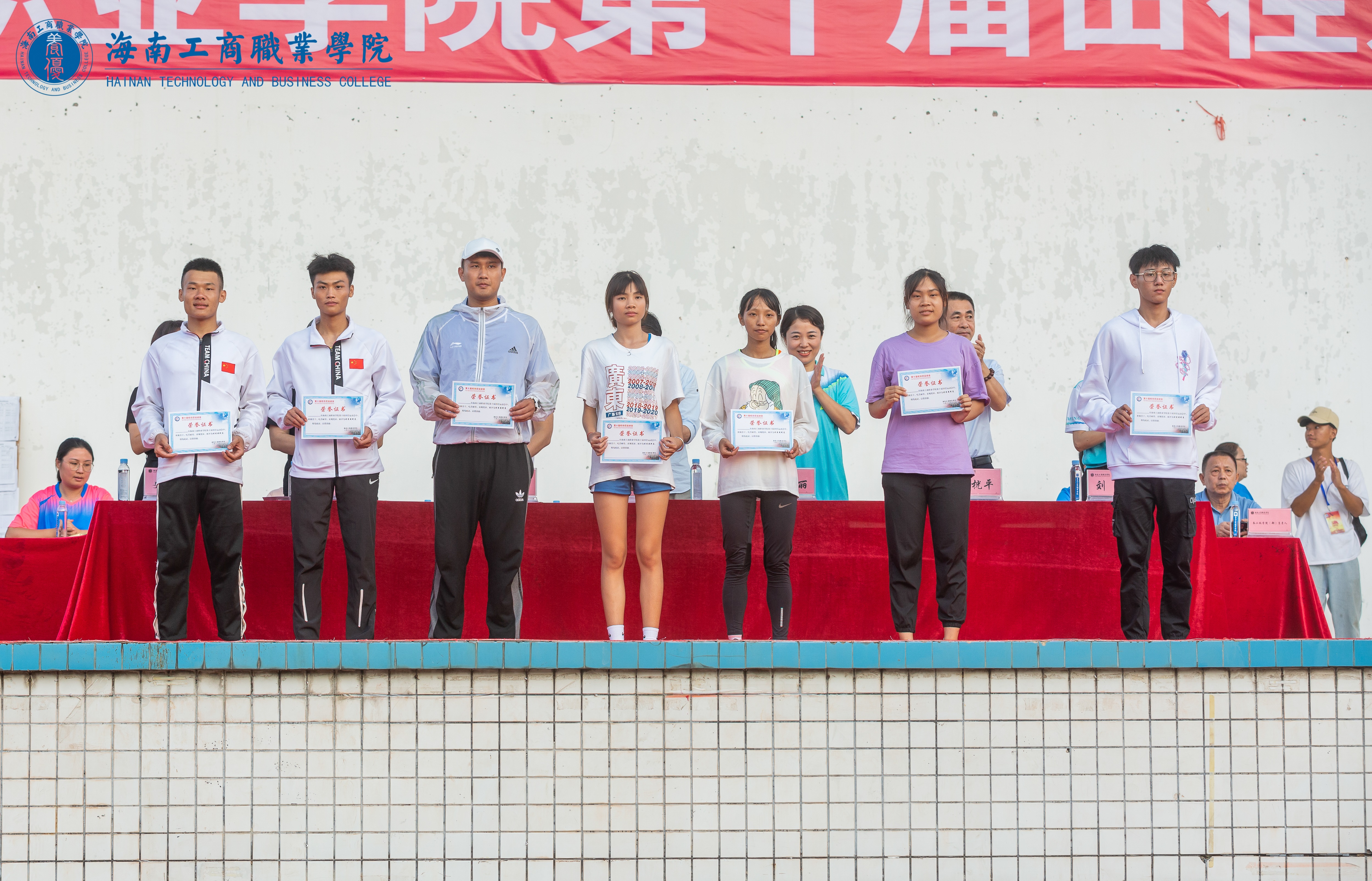 經(jīng)過(guò)兩天緊張而激烈的角逐,大賽組委會(huì)最終評(píng)選出最佳組織獎(jiǎng)、體育道德風(fēng)尚獎(jiǎng)、優(yōu)秀個(gè)人等獎(jiǎng)項(xiàng)。校領(lǐng)導(dǎo)為獲獎(jiǎng)集體、個(gè)人頒獎(jiǎng)。最后,黃恒書(shū)記宣布海南工商職業(yè)學(xué)院第十屆田徑運(yùn)動(dòng)會(huì)閉幕。